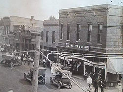 Ashland continued to flourish but on September 17, 1887 a fire devastated a major portion of the Downtown area. Ashland, like other places where there are courageous citizens, soon had building of better character above the ashes of the old ones. The next twenty-five years saw the greatest development in the town's history. In 1915 there were four churches, two banks, elementary and high school, one weekly newspaper, three dry goods stores, two drug stores, four groceries, two furniture stores, three grain elevators, three barber shops, two harness shops, two butcher shops, three restaurants, two hotels, two millineries, one book and stationery store, one undertaker, a livery and feed barn, four physicians and one dentist.